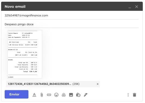 You can get an unique MagniFinance email inbox for your company to forward invoices to.